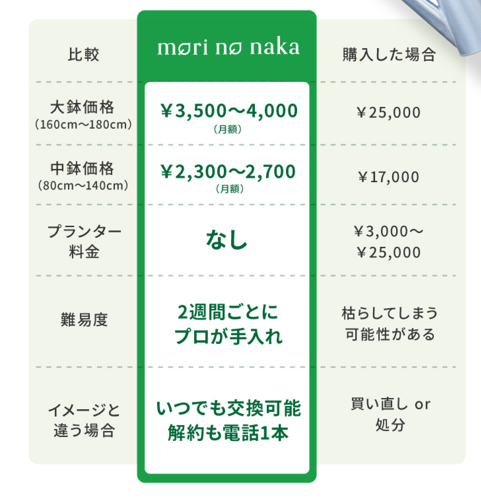 植 物 を ⾒る だ け で ス ト レ ス が 軽 減 さ れ る と い う 研 究 結 果 が あ り ま す 。 ⼼ が リ ラ ッ ク ス す る 空 間 は 、 お 客 様 が ゆ っ く り 過 ご し 、 ⾃ 然 と 購 買 意 欲 を ⾼め る 効 果 が あ り ま す 。