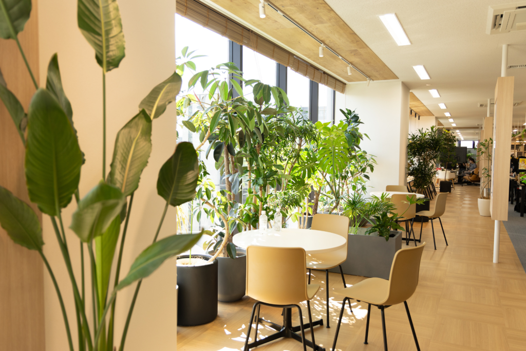 緑があるだけで空間は一気に華やかに。写真を撮りたくなるスポットとして、SNSでの投稿が増え、新規のお客様にも注目されます。